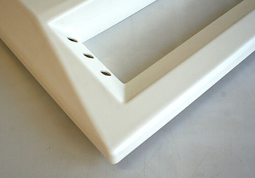 ABS樹脂の真空成形により、エアコン吹き出し口を作成しました。 表面にシボのあるABS樹脂を成形しています。天井に付くエアコンのカバーの為、意匠面の仕上がりに気を遣っています。